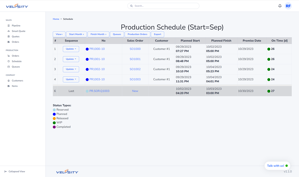 In Part 2 we showed how Velosity can transform the quoting process for build-to-order products compared to Excel. In this article we will look at the quote to scheduling cycle/process in Velosity.