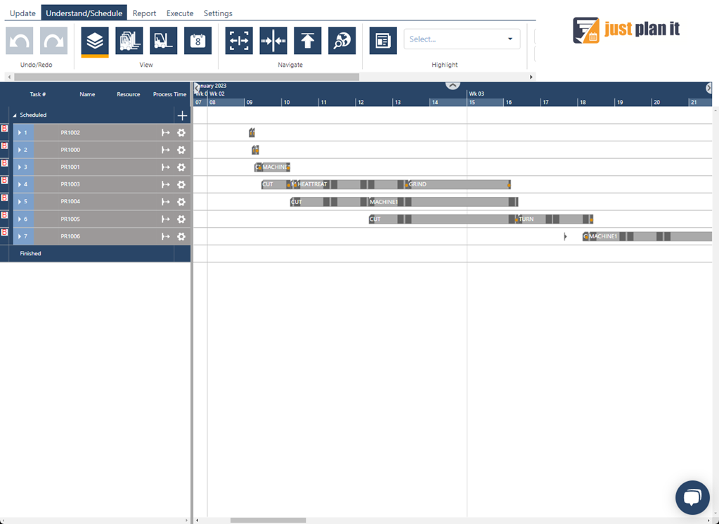 When the Production Scheduling feature in Velosity is used, Velosity offers users the ability to view & manage production orders by Task.