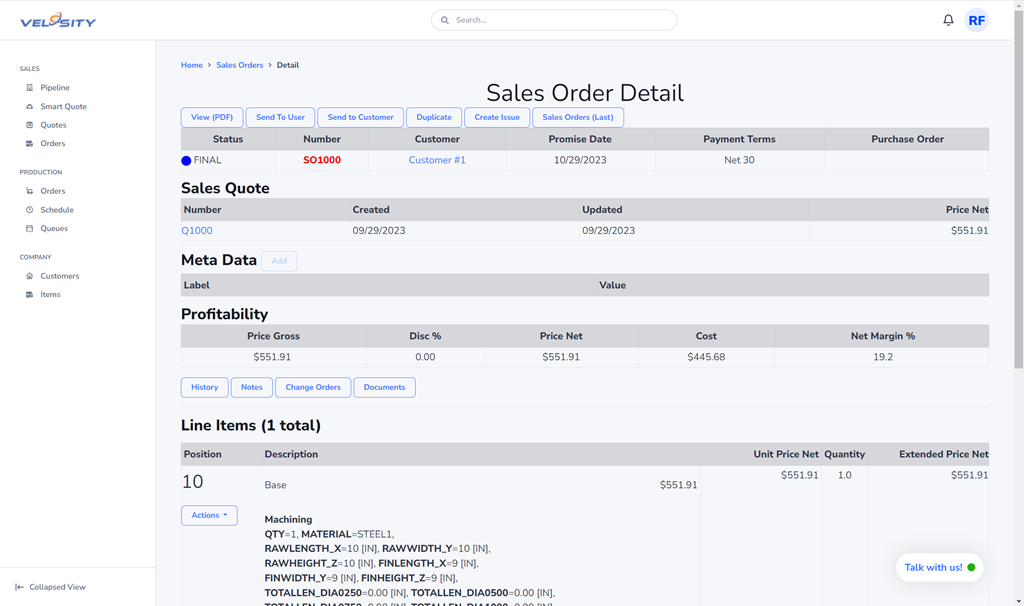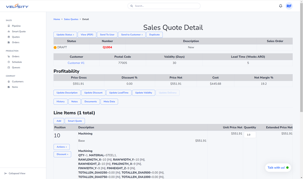 Velosity transformed the quote and order management processes for this company compared to Excel being used previously. It also gained the ability to quickly view and use historical quotes and orders. The Company gained automatic production scheduling that previously had been very time consuming and error prone to manage using Excel.