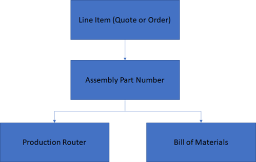 ERP software is designed to have an assembly (top level) part number for every line item (quote or order). Below this assembly part number is a unique production router and bill of materials. Using an ERP for a configured product to create a quote with 5 line items would require creation of: 5 assembly part numbers, 5 production routers and 5 bills of material (BOM). This is made somewhat easier by duplicating and then editing an existing router and BOM. The router is still a challenge however, because the process time for each of the production steps would need to be estimated and updated.