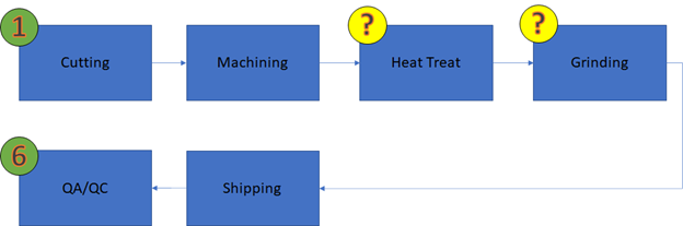 Heat treat and grind are optional, depending on customer requirements. The bill of materials presents another problem.
