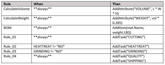 The rules that are evaluated to generate the router and BOM are shown here.