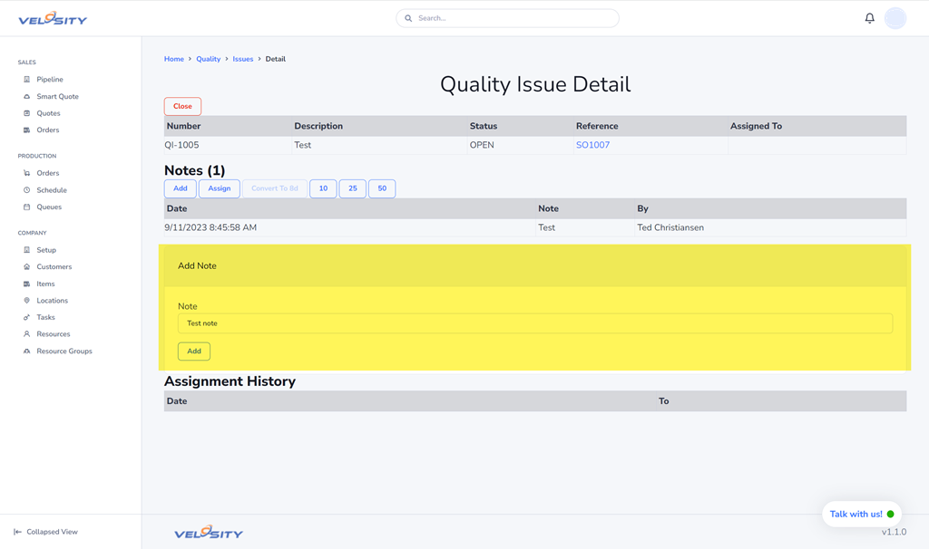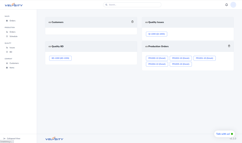 Velosity is able to support the management of quality issues - using either: 1) 8D problem solving, 2) general issue management.