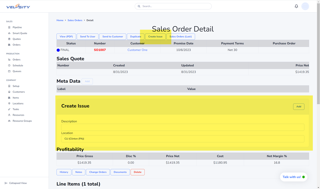 Issues can be created from: 1) Sales Orders, 2) Production Orders, 3) Production Order Tasks.